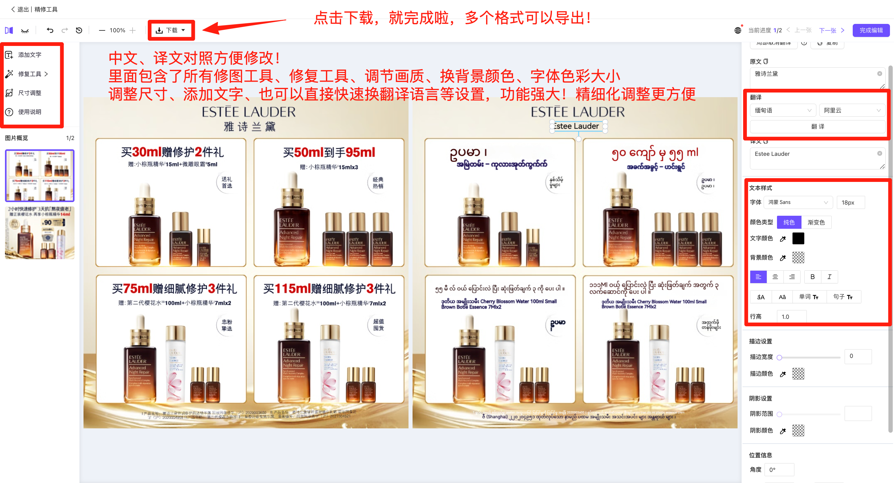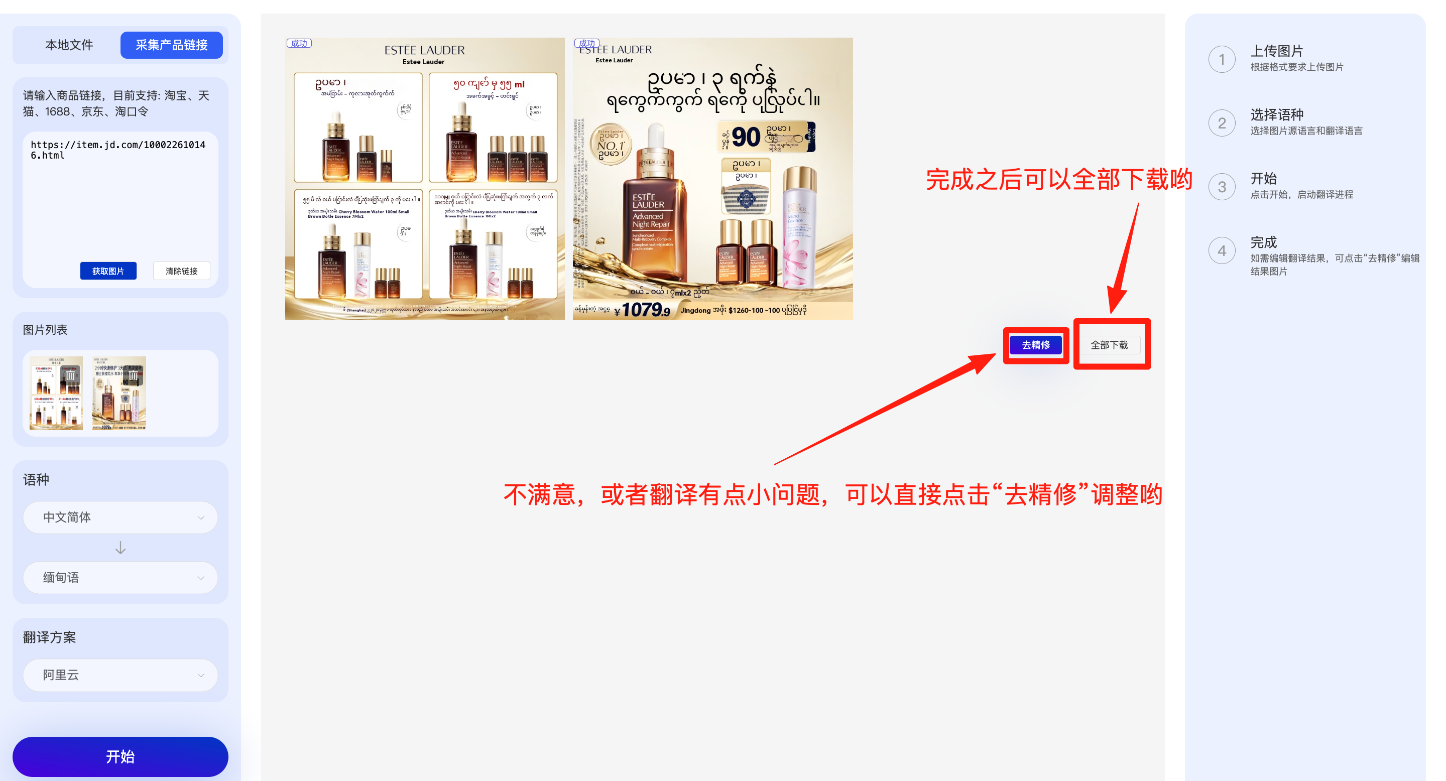 第三步:选语言、翻译、下载成品图